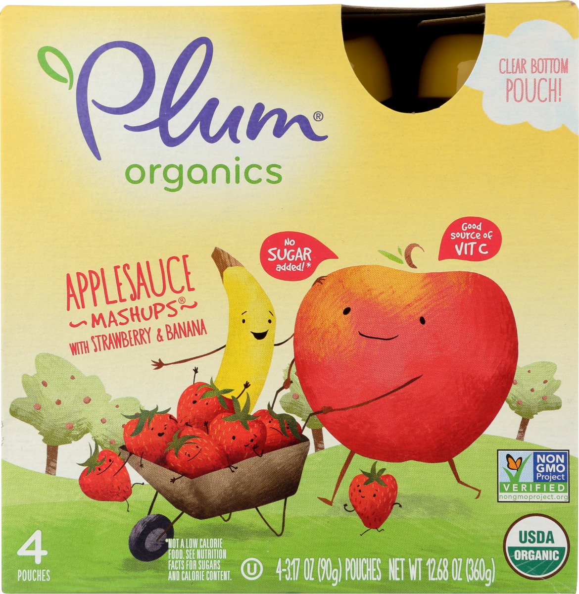 - The manufacturer of Applesauce Mashups with Strawberry & Banana, Strawberry & Banana is Plum Organics.