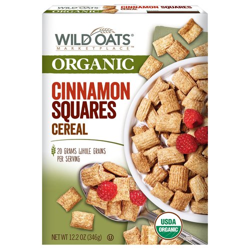 - The manufacturer of Organic Cinnamon Squares Cereal is Wild Oats Marketing Llc.