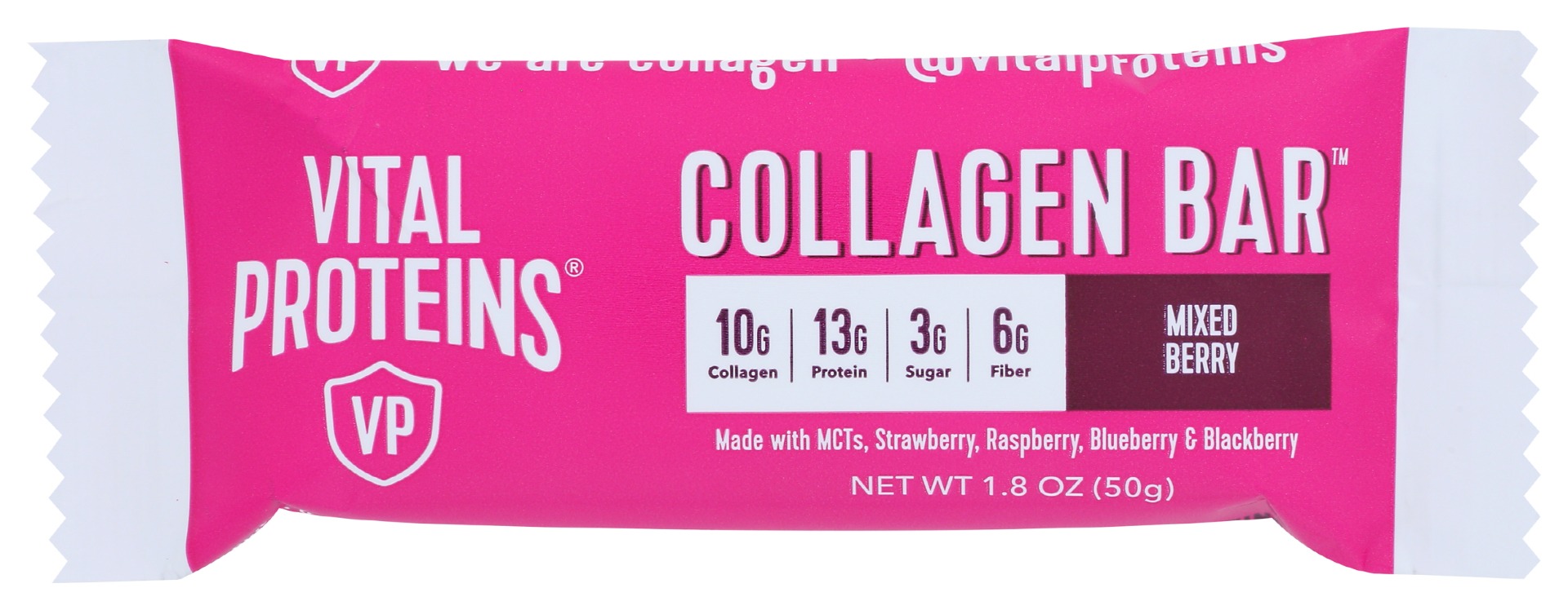 - The manufacturer of Collagen 10 G, Protein 13 G, Sugar 3 G, Fiber 6 G Bar, Mixed Berry, Mixed Berry is Vital Proteins.