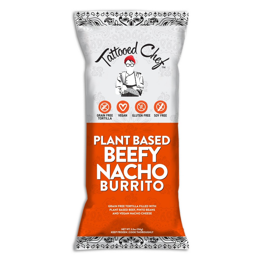 - The manufacturer of Beefy Nacho Grain Free Tortilla Filled with Plant Based Beef is Tattooed Chef.