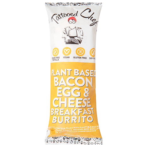 - The manufacturer of Bacon, Egg & Cheese Breakfast Grain Free Tortilla Filled with Plant Based Bacon, Vegan Eggs, Hash is Tattooed Chef.