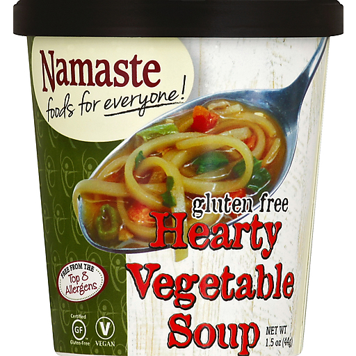 - The manufacturer of Hearty Vegetable Soup is Namaste Foods.