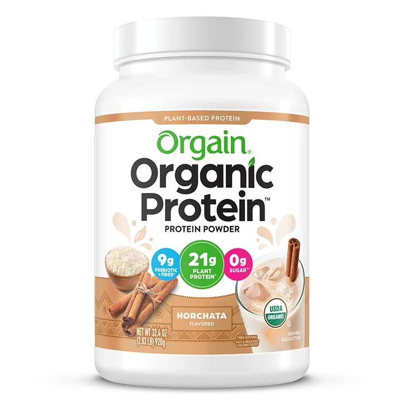 Horchata is usually reserved for summer vacations and celebrations. But what if you could indulge your horchata addiction every day? Say no more. Hello, Orgain Organic Protein Plant Based Protein Powder in a delicious Horchata flavor. It’s the creamy sweet drink you love, now available with 21g* of protein and the delightful essence of cinnamon and vanilla and 0g*^ of total sugar. Whether you enjoy it iced, warm, baked, or shaken, it's a nutritious fiesta of flavor for any time of the day.