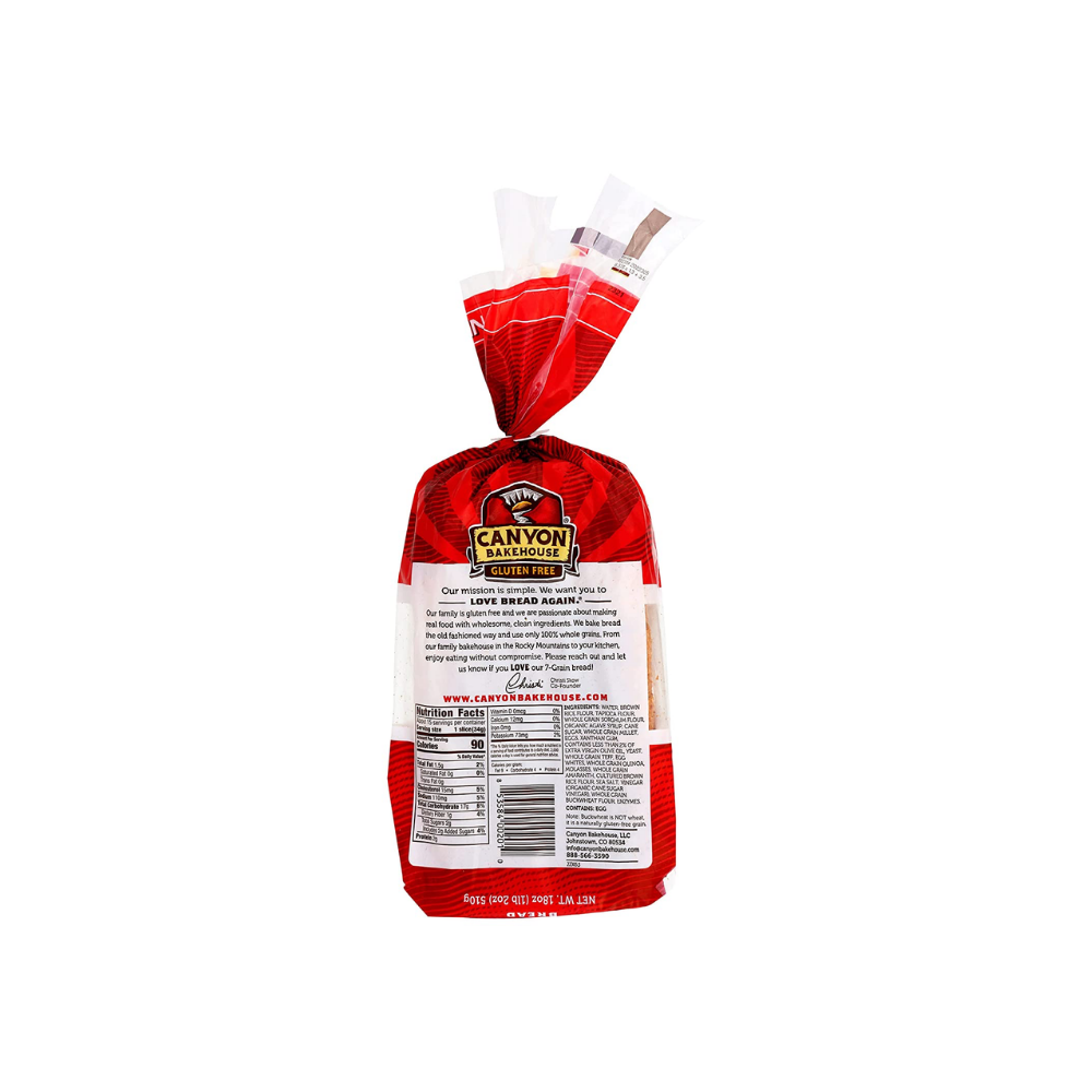 - The manufacturer of 7-Grain Gluten Free Bread, 7-Grain is Canyon Bakehouse.