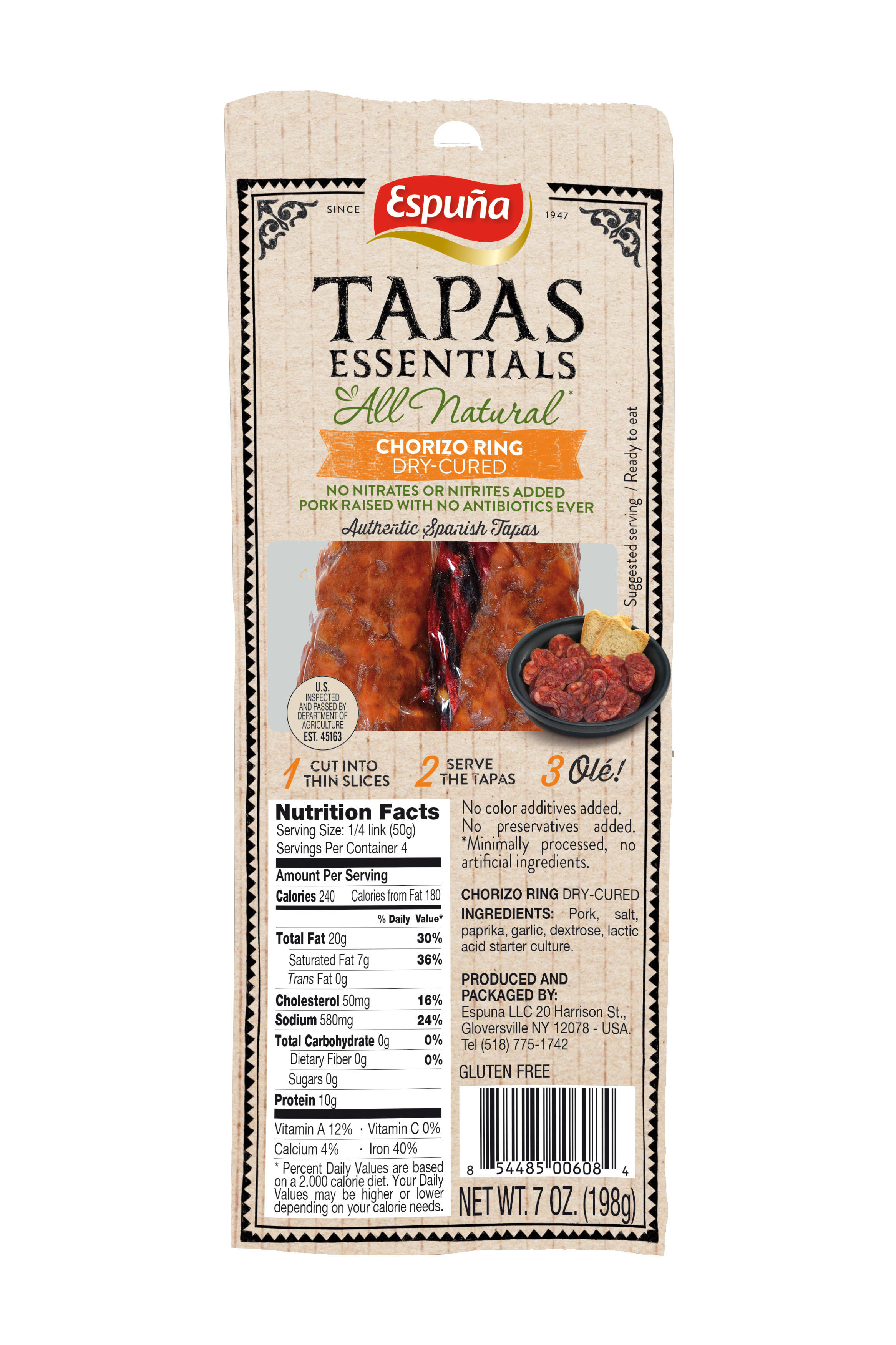 - The manufacturer of Chorizo Ring Dry Cured, Authentic Spanish Tapas, Chorizo Ring Dry Cured is Espuña.