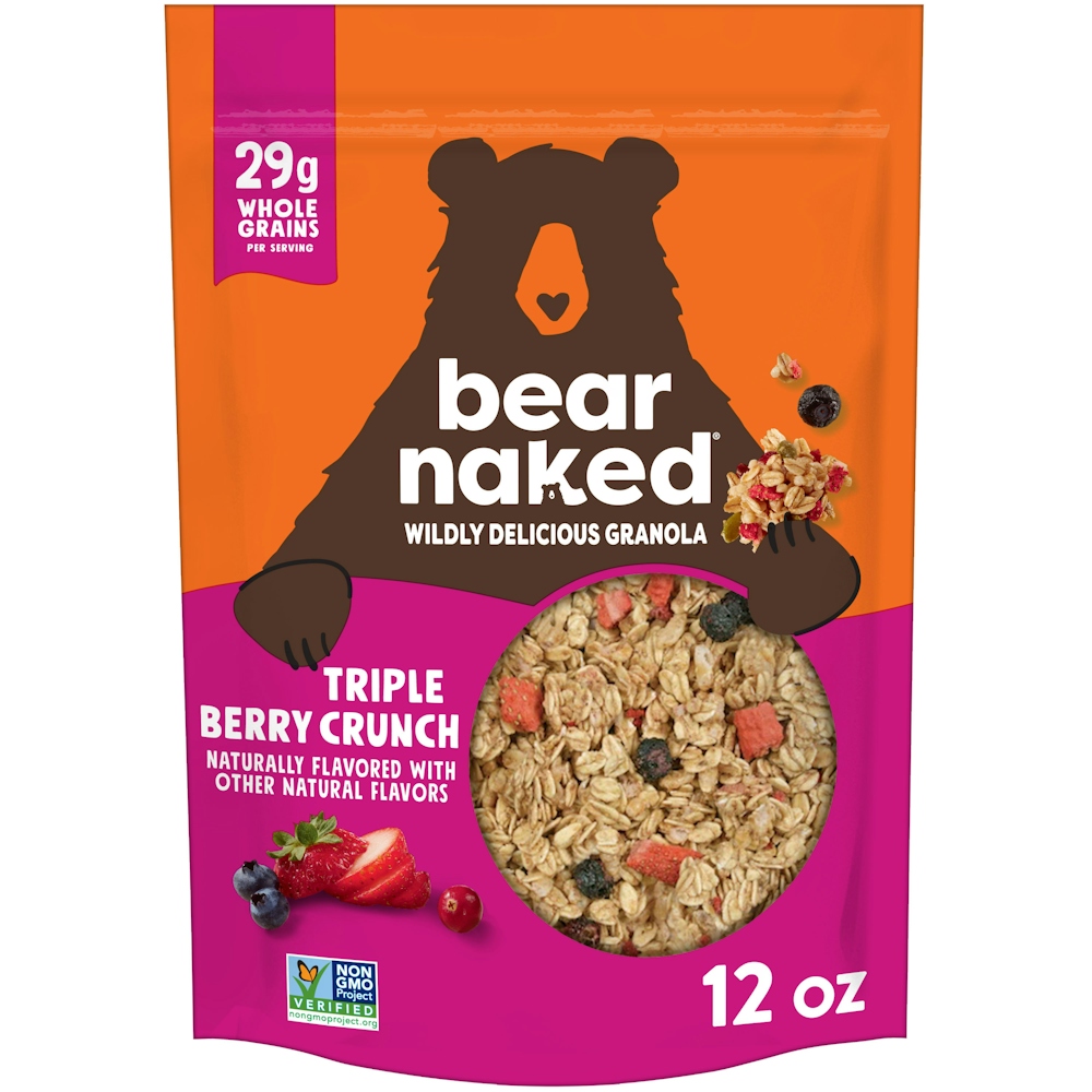 Triple berry has just the right amount of vibrant fruity sweetness, but not too much fat or sugar. It’s a crunchy, scrumptious blend of whole grain oats and real strawberries, raspberries and blue berries. Just right.