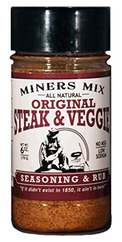 If it didn't exist in 1850, it ain't in here. The entire philosophy behind all Miners Mix seasonings is taste the food, not the seasoning. Steak and Veggie is low salt, all natural, and contains no MSG, nor any other ingredient with more than 3 syllables. Use it with confidence on beef roast, steaks, pork chops, chicken, grilled mushrooms, or just about anything else on which you care to use it. Excellent for indoor cooking as well on hash brown potatoes, oven roasted herbed potatoes, and high temperature roasted veggies like zucchini and cauliflower. Simply put, this seasoning is great on everything.