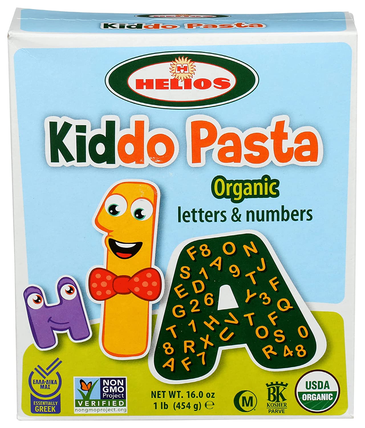 - The manufacturer of Organic Letters & Numbers Kiddo Pasta is Helios.