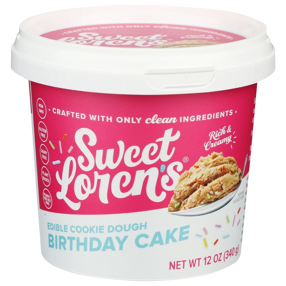 - The manufacturer of Birthday Cake Edible Cookie Dough, Birthday Cake is Sweet Loren's.