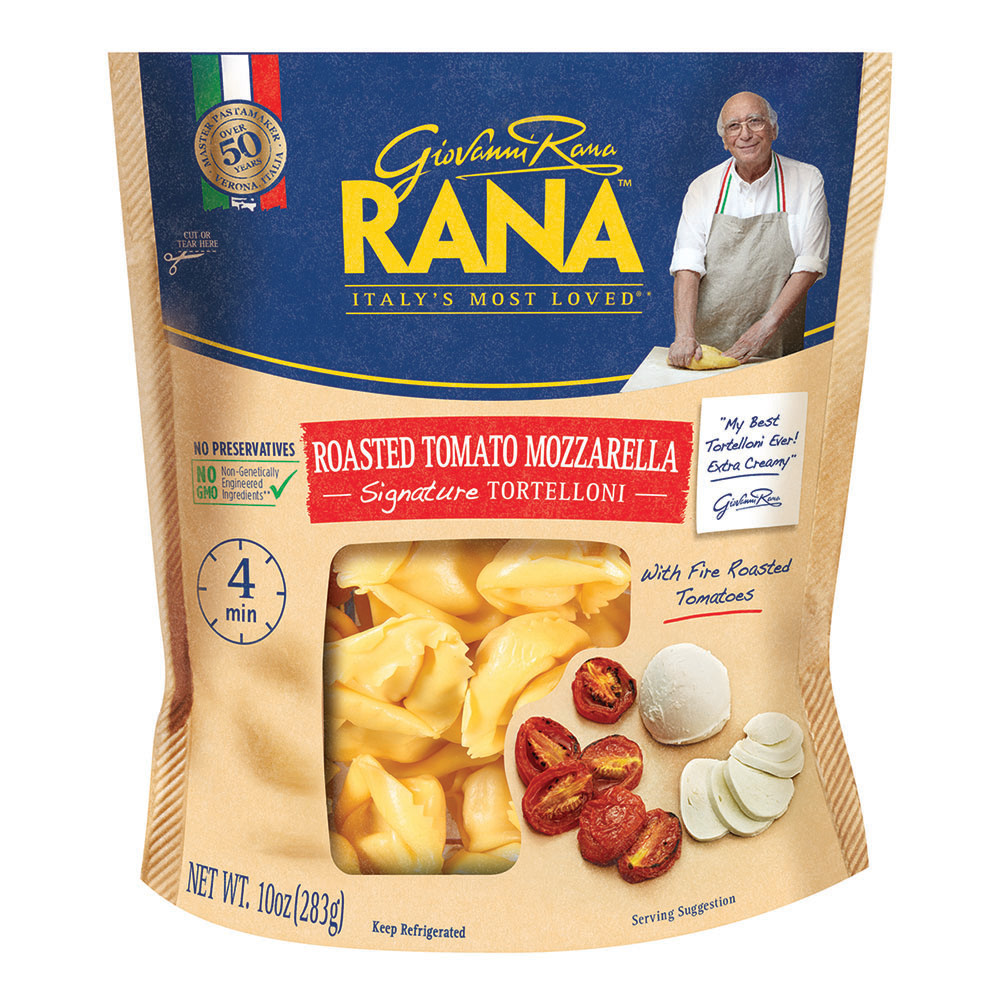 Roasted tomato & creamy mozzarella cheese wrapped in thin pasta. 4 min. No preservatives. Italy's most loved (Based on refrigerated pasta sales). Master pasta maker over 50 years. Verona, Italia. For more information or to contact us call 888-326-2721 or go to www.giovannirana.com.