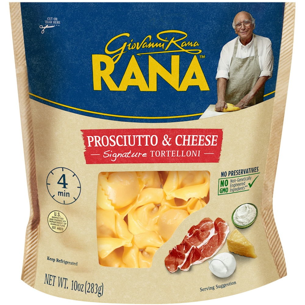50 years experience package call out. Expertly crafted in America. All natural, non-GMO pasta favorite. Carefully crafted by master pasta makers with over 50 years experience Rana™ tortelloni pasta offers your customers a silky smooth texture and an authentic Italian ravioli filling. Made from 100 percent all natural ingredients this bite-size pasta, filled with a gourmet blend of cheeses and aged prosciutto satisfies every pasta lover. This sought-after stuffed pasta makes the perfect addition to your gourmet refrigerated pasta displays.
