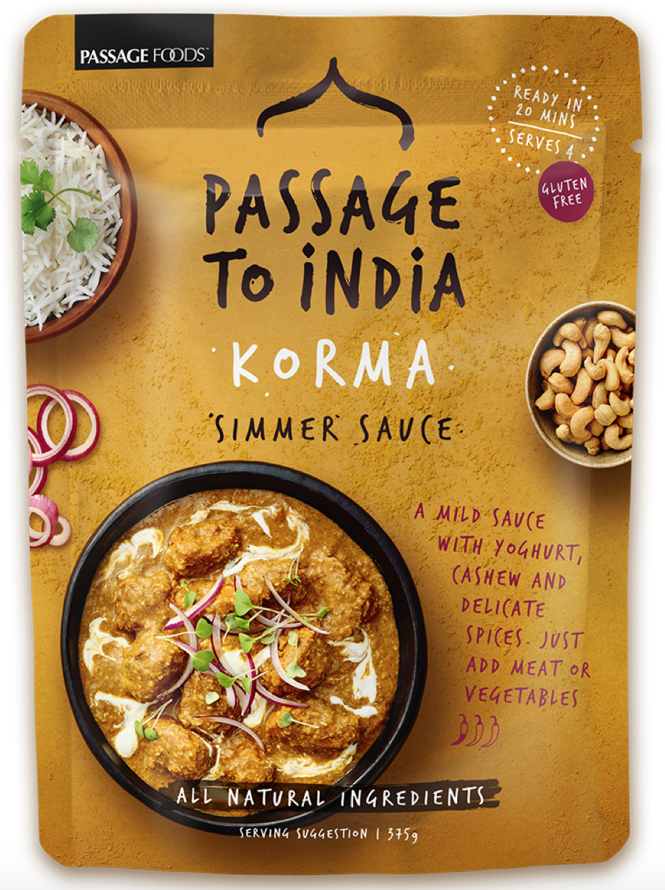 - The manufacturer of Korma Simmer Sauce, Mild is Passage To India.
