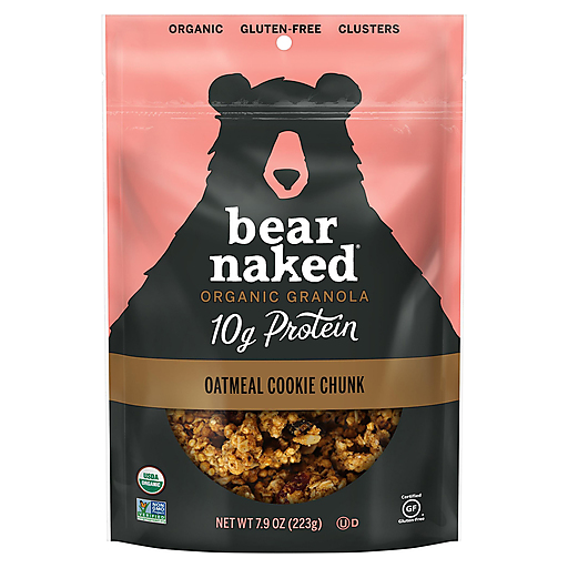 Bears and humans don't always see eye-to-eye. Mostly, it's the height difference. One thing we do agree on is Bear Naked Protein Clusters Oatmeal Cookie Chunk. USDA Organic, Non-GMO Project Verified, and gluten-free granola clusters make a nature lover's delight with 10g of protein per serving. A diverse mixture of clean tasting pea and whey proteins packed in every bite.