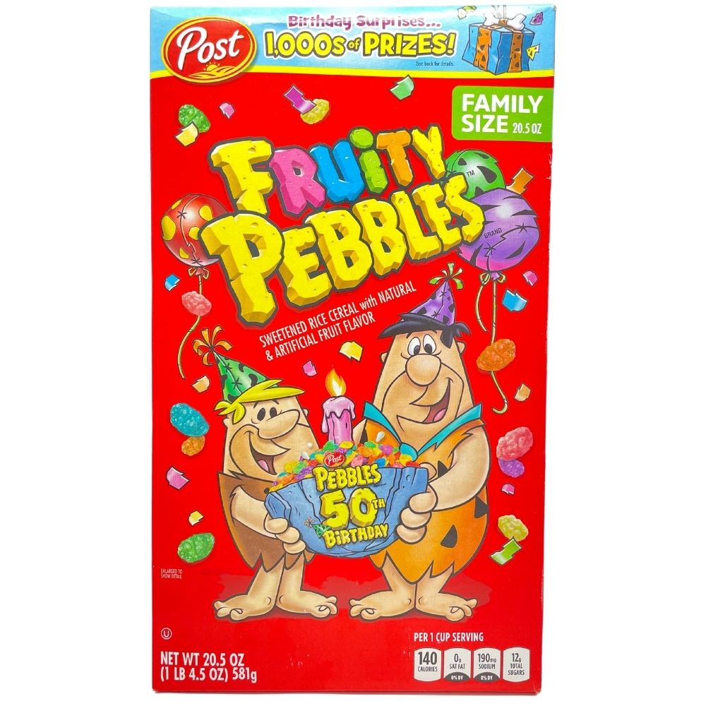 Enjoy this new packaging and size to celebrate Pebbles 50th anniversary! ๐๐. This iconic cereal has been putting smiles on kids faces from as far back as the 1970s! To this day they still feature the original Flintstone characters that were originally created by Hanna-Barbera and now owned by the Warner Brothers. Click here to create your own awesome Flintstones character!