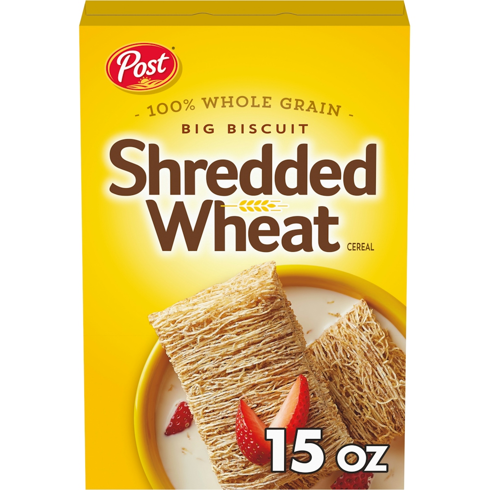The original big biscuits you love are made with whole grain wheat and contains 0g saturated fat, 0g trans fat, and 0mg cholesterol per serving. Grab a box of Post® Shredded Wheat Original Big Biscuit today!