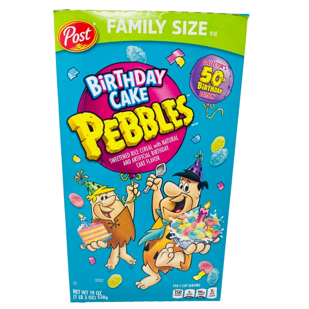 There may not be a more iconic cereal! Fruity Pebbles have been putting smiles on kids faces since the 1970s and are now celebrating their 50th birthday! To this day they still feature the original Flinstones characters created by Hanna-Barbera, now owned by Warner Brothers. Enjoy them today in their new birthday cake flavour, a fun and delicious twist on the traditional birthday cake! The new cereal features blue, pink and yellow flakes and a vanilla birthday cake and frosting flavor. Have your cake and eat it too!