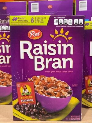 - The manufacturer of Raisin Bran Whole Grain Wheat & Bran Cereal, Raisin Bran is Post.