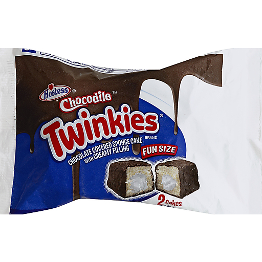 Hostess® Chocodile Twinkies® Brand Fun Size. Chocolate covered sponge cake with creamy filling. Please have packaging available. Hostess quality commitment. Comments or questions: 1-800-483-7253. hostesscakes.com. ©2014 Hostess Brands, LLC.