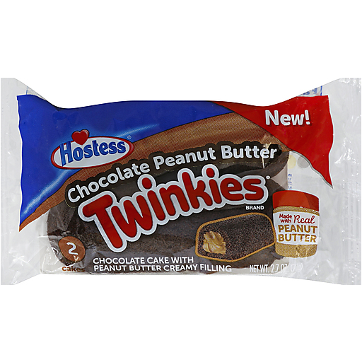 Hostess Peanut Butter Twinkies, Chocolate Sponge cake with a creamy peanut butter filling. 2 cakes per pack.