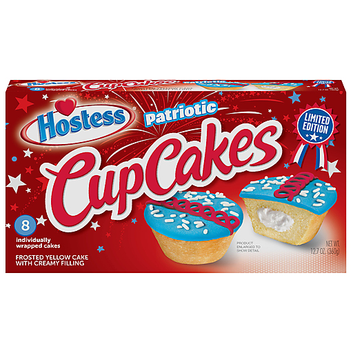 - The manufacturer of Patriotic Cupcakes Frosted Yellow Cake with Creamy Filling, Patriotic is Hostess.