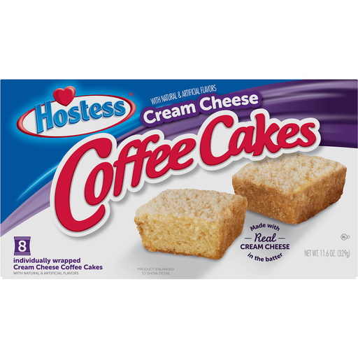 Hostess® Cream Cheese Coffee Cakes love company. An individually wrapped breakfast-time favorite, these treats are the perfect companion for your morning cup of joe. Not a coffee drinker or morning person? No problem. Live Your Mostess with whatever you please. They're great for breakfast, afternoon snacking, and late-night indulgences alike. Either way, the delectable cream cheese flavor mixed into moist, buttery cake is sure to sweeten up your day.