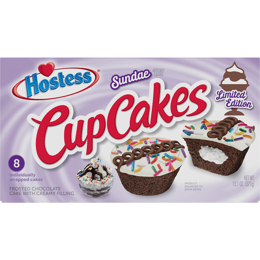 - The manufacturer of Sundae Flavored Frosted Chocolate Cake with Creamy Filling Cupcakes, Sundae is Hostess.