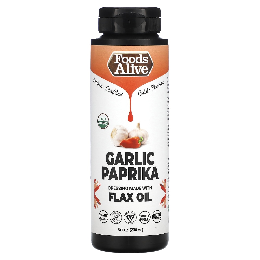 Our cold-pressed golden flax oil is paired with a savory garlic and aromatic paprika flavor to create this superfood dressing. This top-notch dressing pacts a flavorful punch and puts a healthy twist on any dish! With a cold-pressed omega packed oil base this dressing is one of the healthiest additions to any salad. This dressing is a great addition to a variety of dishes and always the perfect salad topping! From sandwiches and wraps to pasta and rice the possibilities are endless!