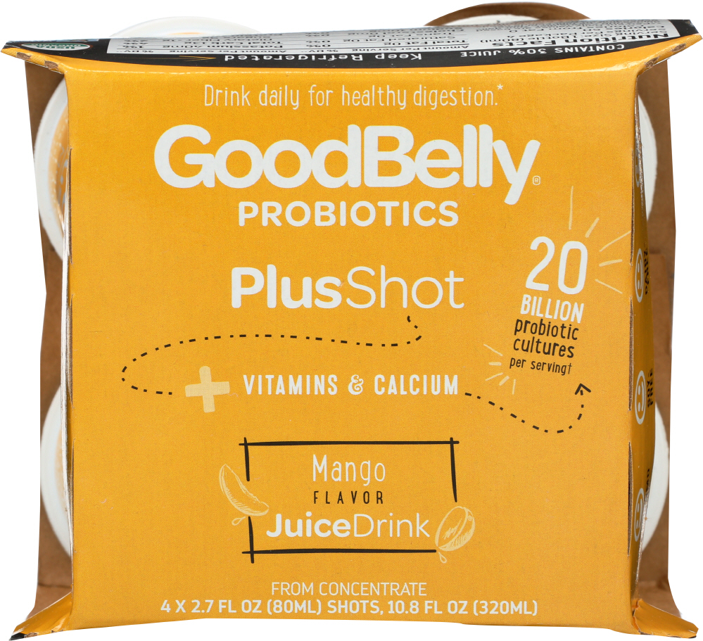 its the deliciously juicy dairy-free probiotic fruit drink thats perfect for the whole family. Mango, 6 of 4 of 2.7 OZ, By GOOD BELLY Whether its on your breakfast table or as a late afternoon pick-me-up, GoodBelly is the nutritious beverage of champions! GoodBelly is specifically designed to be enjoyed daily in order to boost your immune system and improve digestive health by replenishing your bodys healthy microflora. Mango, 6 of 4 of 2.7 OZ, By GOOD BELLY GoodBellys patented Lp299v probiotic strain has been clinically proven in over 15 years of research.