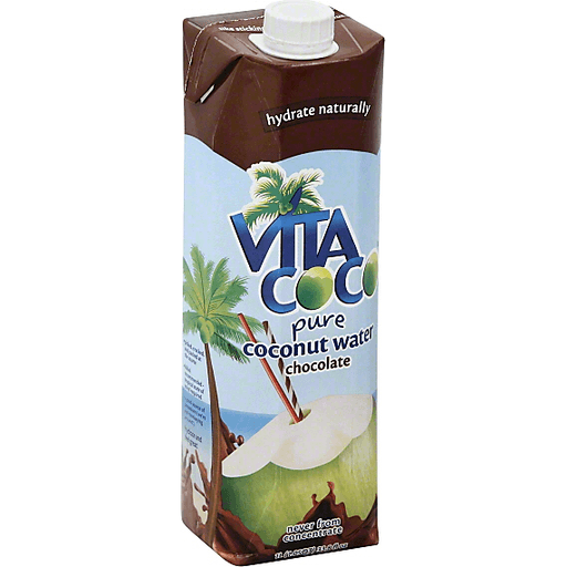 Vita Coco® Pure Coconut Water Chocolate. Hydrate naturally. Never from concentrate. Chill it, don't spill it. Picked, cracked, and packed at the source. Bikini recommended - tropical state of mind required. A good source of potassium (we're not monkeying around)! Hydrate and feel great! Recyclable. Only where facilities exist. Visit recyclecartons.com to see if recyclable in your area. Like sticking a straw in a coconut. Born in Brazil. Tetra Pak®. Protects what's good. 80% Juice. Gluten free. Contains only natural ingredients; taste and color may vary. Produced in Sri Lanka. Tetra Prisma® aseptic.