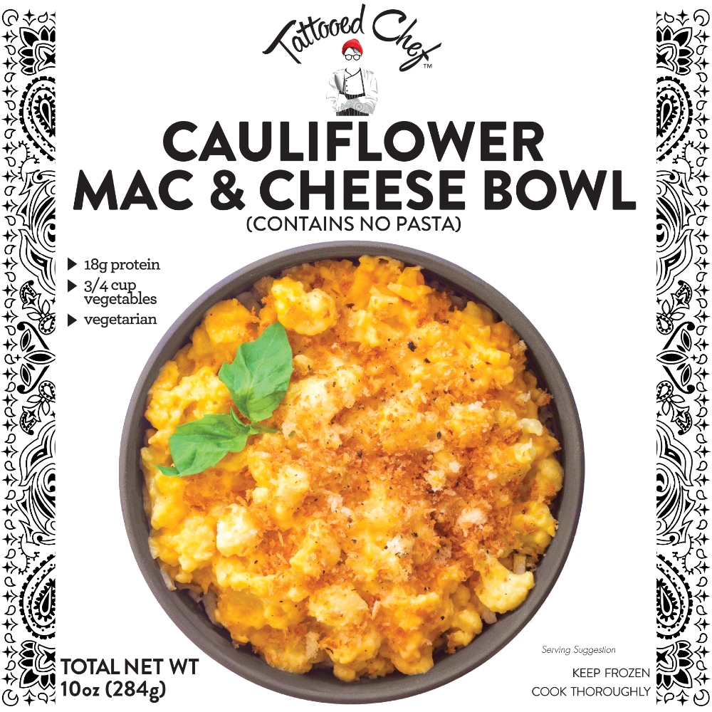- The manufacturer of Cauliflower Mac & Cheese Creamy Cheddar Cheese Sauce Over Cauliflower Florets Topped with Panko is Tattooed Chef.