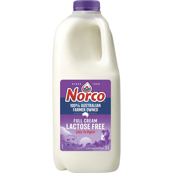 If the naturally occurring sugars in dairy can be uncomfortable for you to digest, Norco Lactose Free Full Cream Milk has the delicious creamy taste of milk without the lactose. We have carefully crafted this milk with an enzyme that removes the lactose for a gentle on the stomach, great tasting milk!